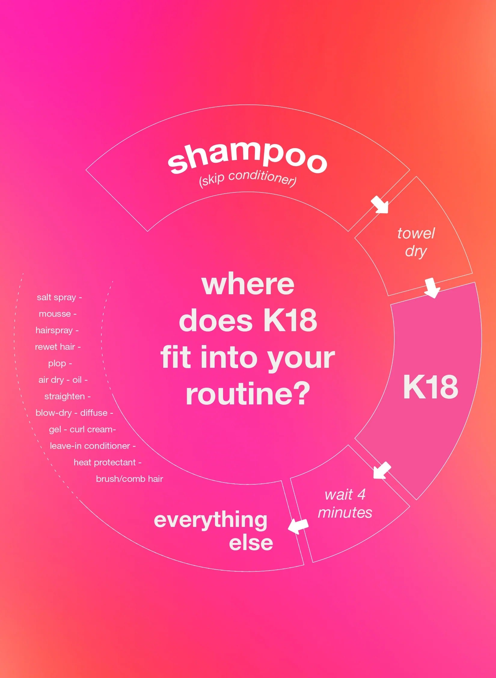 The K18 mask works as a treatment to reverse damage in 4 minutess,It's powered by our biomimetic K18PEPTIDE to seamlessly fit in and reconnect broken polypoptide chains at the molecoular level, As a rosult,disulfide bonds are also roconnected for roinforced strongth along the length t width of hair-offering comprehensive, lasting, and progressive repair.