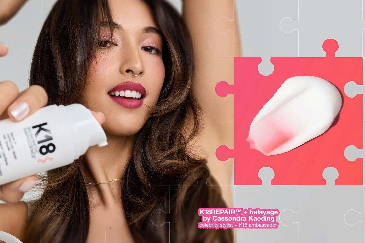 multiple types of bonds including polypeptide chains and disulfide bonds to reverse damage from bleach, color,chemical services, and heat*. Developed through biotechnology, the K18PEPTIDE is optimized for human biology and uniquely matches and clicks into hair's keratin structure, reconnecting damage sites at the molecular level, K18PEPTIDE delivers durable repair for all hair types, restoring strength and elasticity.